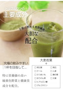 トリプルワンの豊富な栄養と健康成分肌の調子がいい!トリプルワン 青汁畑 の栄養 -